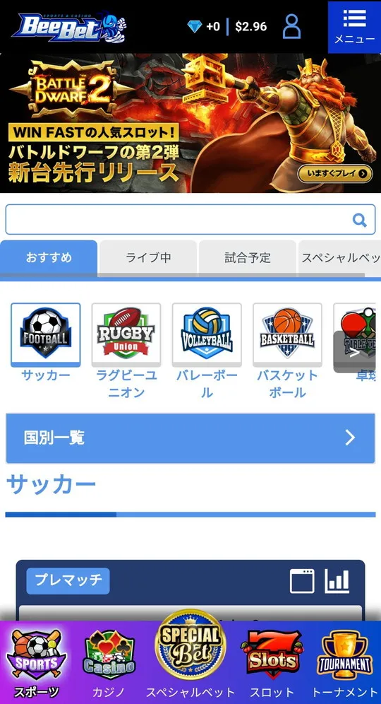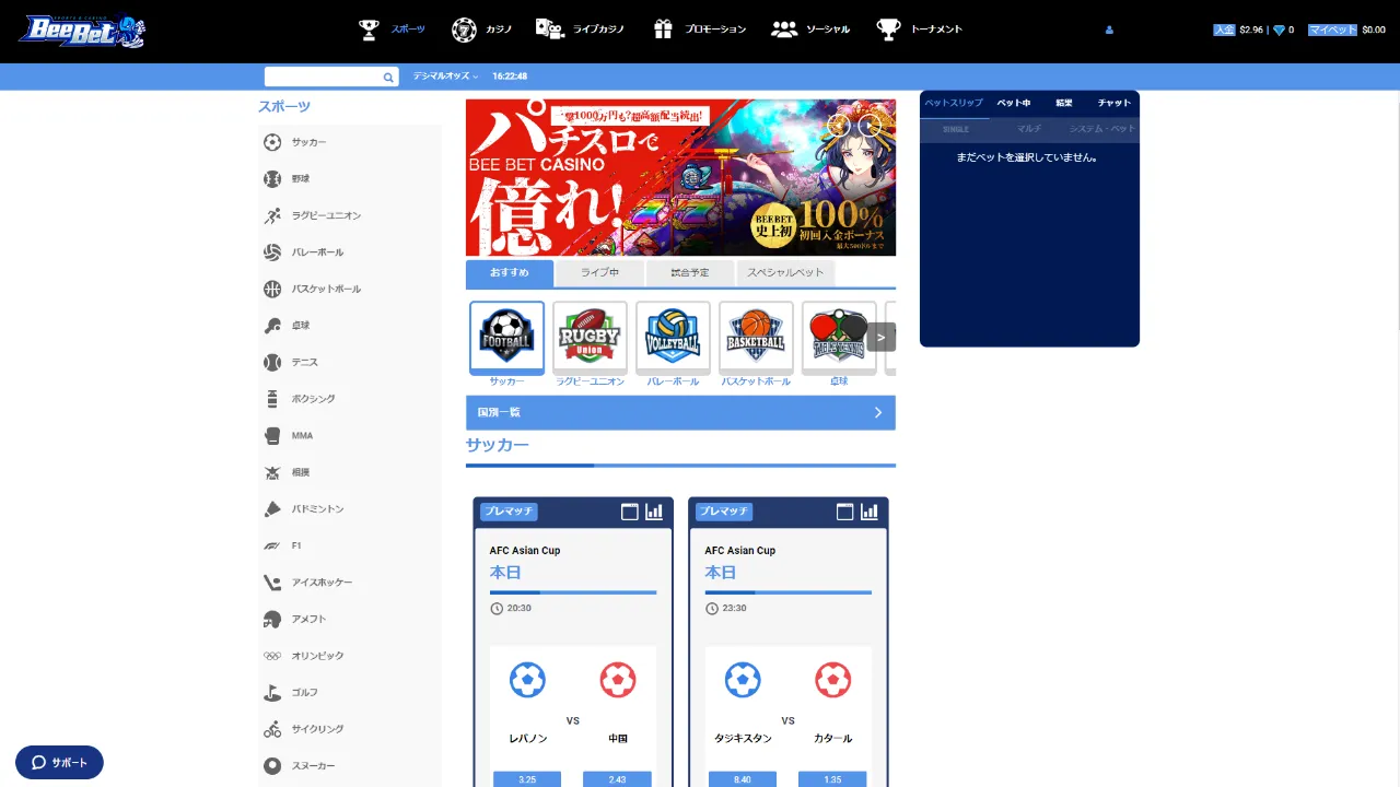 サッカーは国内でも人気の高いスポーツであり、特に日本代表の試合となると注目度も跳ね上がります。ビーベットではサッカーに対してもとてもお得なボーナスを用意しているのです。