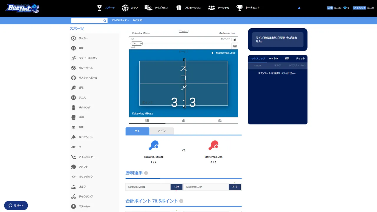 ビーベットではサッカーや野球、大相撲、バスケなど国内での人気スポーツを中心にベットすることができます。また、ビーベットはライブストリーミング機能が実装されており、ユーザーは実際に試合を観戦しながらスポーツベットを楽しむこともできます。