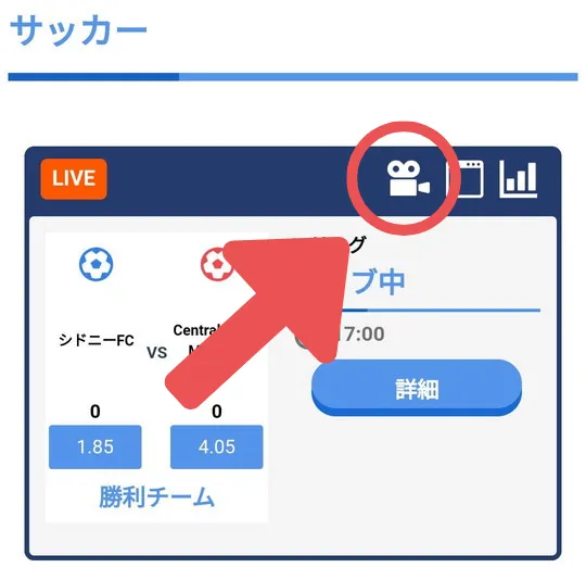 ビーベットでは、ライブストリーミングが利用できる試合にはカメラのマークがついています。このマークがついている試合にベットするとリアルタイムで試合を視聴しながらスポーツベットを楽しむことができます。