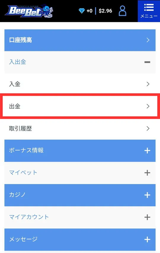 出金方法は、基本的に入金方法と同じである必要があります。但し、ビーベットはクレジットカードで出金することができないので、クレジットカードで入金したユーザーは別の出金方法を選択する必要があります。