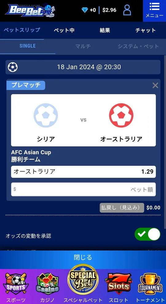 これらのプロモーションは常にアップデートされ続けていくので、チャンスを逃すととてももったいないです。そのため、大きなスポーツイベントが行われる際にはちらっとでいいのでビーベットを覗いてみることをおすすめします。