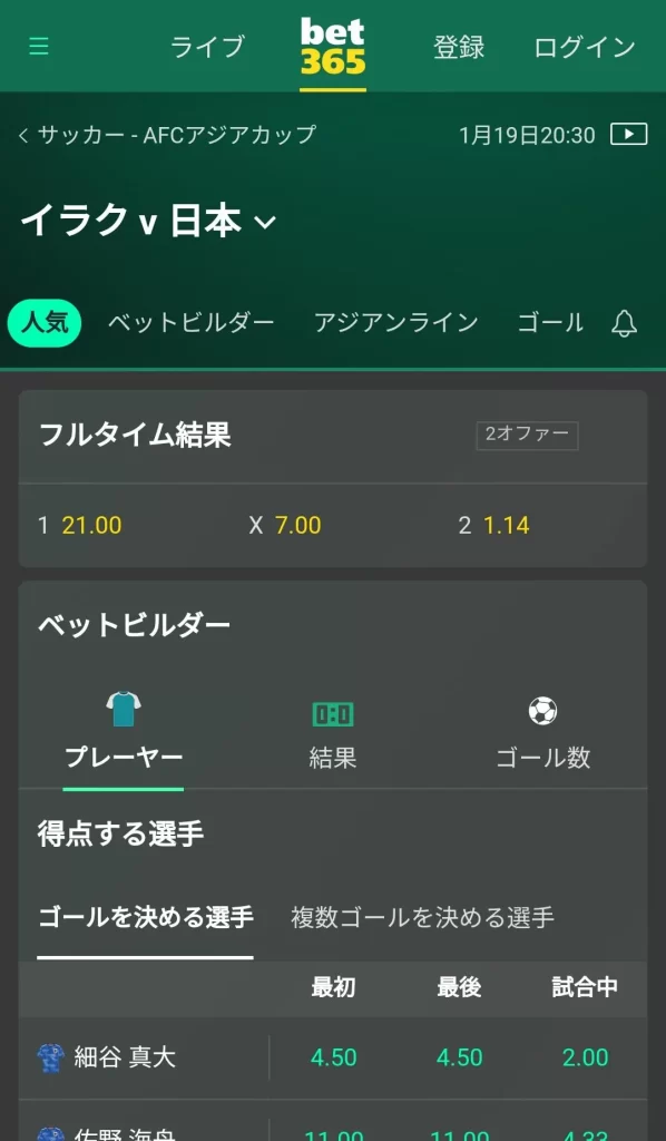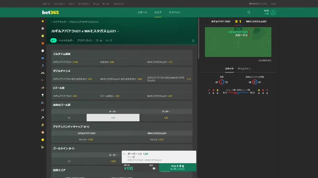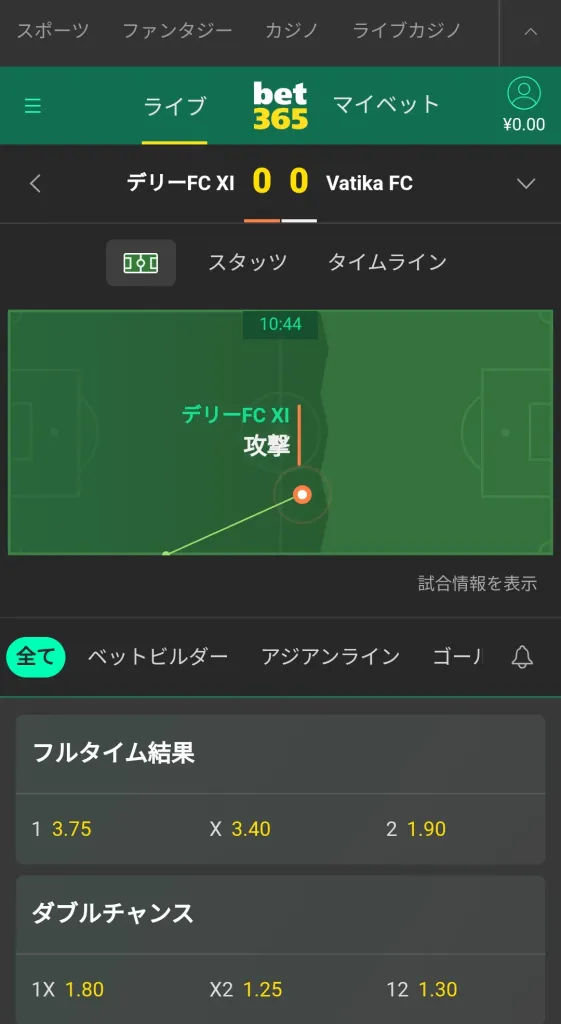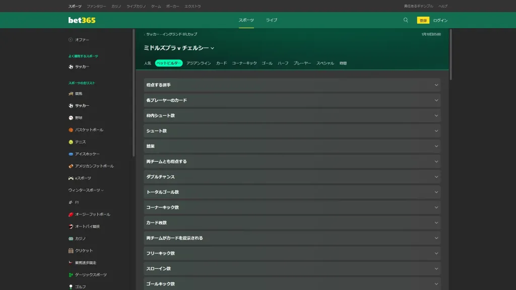 bet365ではベットオプションが非常に豊富に用意されており、特にサッカーにベットする際はあらゆる選択肢から自分が最も賭けたい選択肢にベットすることができます。