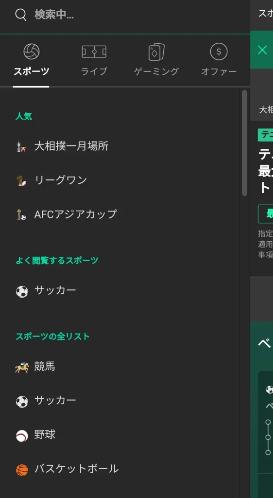 スポーツベット・ヴァーチャルスポーツ・カジノ・ライブカジノ