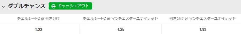 ブックメーカーによってはダブルチャンスと呼ばれる賭け方を用意していることがあります。