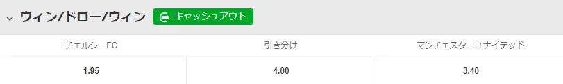 ワンバイツーでは引き分けもベットオプションとして組み込まれ、3つの試合結果から予想します。そのため、各ベットオプションのオッズも高めに設定されています。