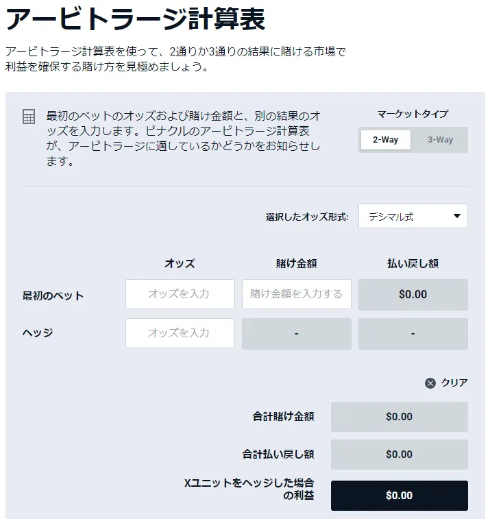 それどころか、ピナクルではアービトラージが成立するためのオッズを見つけるツールの提供まで行っており、ユーザーにアービトラージを推奨しているような態度を取っているのです。