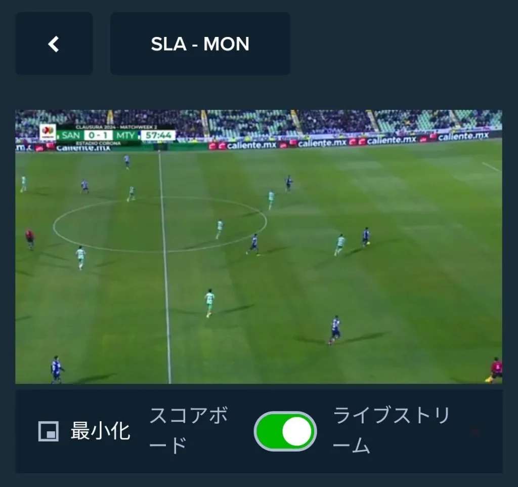 ライブストリーミングで視聴できるスポーツはビデオマークがついているため、一目でどの試合がライブストリーミングの対象なのかということが分かるようになっています。