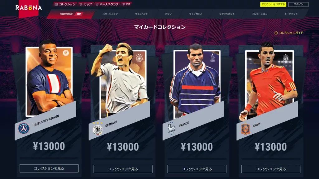 独自のシステムもラボーナの人気を支えている要因です。特にカードコレクションと呼ばれるサービスは他のブックメーカーでは見られない唯一無二のコンテンツであり、ラボーナでおすすめしたい遊び方です。