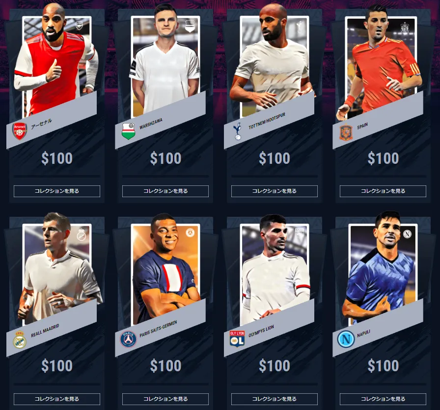 カードコレクションには世界中のあらゆるチームが存在しています。それぞれのチームには11枚の枠があり、その枠をカードで11枚埋めると、賞金100ドルを獲得することができるというシステムです。