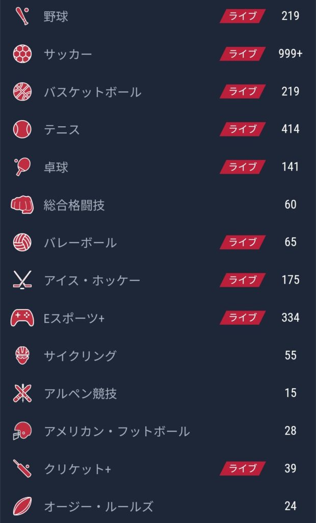 ラボーナでは、サッカーや野球、テニス、格闘技などあらゆるスポーツにベットできるのは当然ながら、ベットオプションもバラエティー豊かなラインナップとなっています。