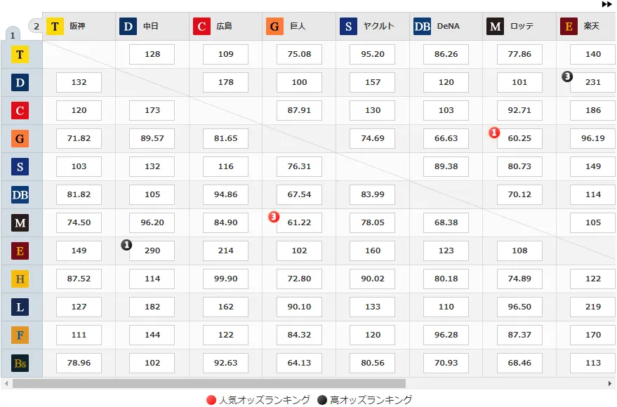 ベースボール・ダービーとはその日の試合の得点数が多いチームの1位,2位を的中させるスペシャルベットです。競馬で言うところの、連単と考えると分かりやすいかもしれません。