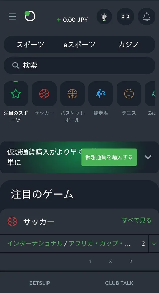 仮想通貨を持っていないユーザーでもスポーツベットアイオー内で仮想通貨を購入することができるため、仮想通貨でブックメーカーを楽しんでみたいというユーザーへの門戸は常に開かれていると言ってもいいと思います。