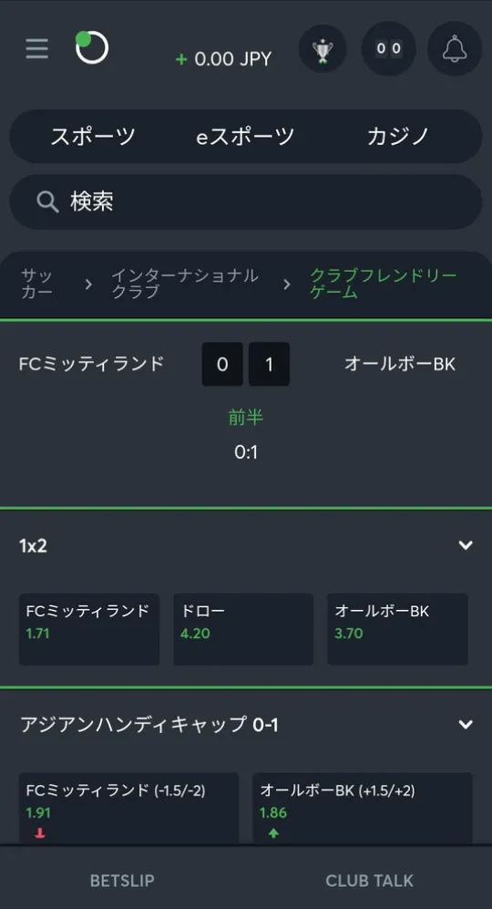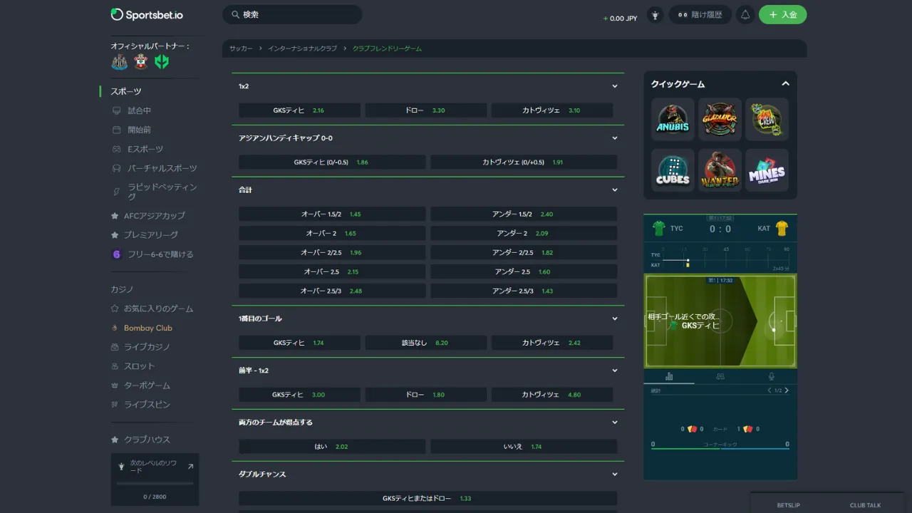 サイトの日本語化や日本語サポート、日本円による入出金など、国内ユーザーも使いやすい環境が整っています。日本のスポーツも多くラインナップしており、サッカーの日本代表戦やプロ野球、Bリーグにもベットすることができます。