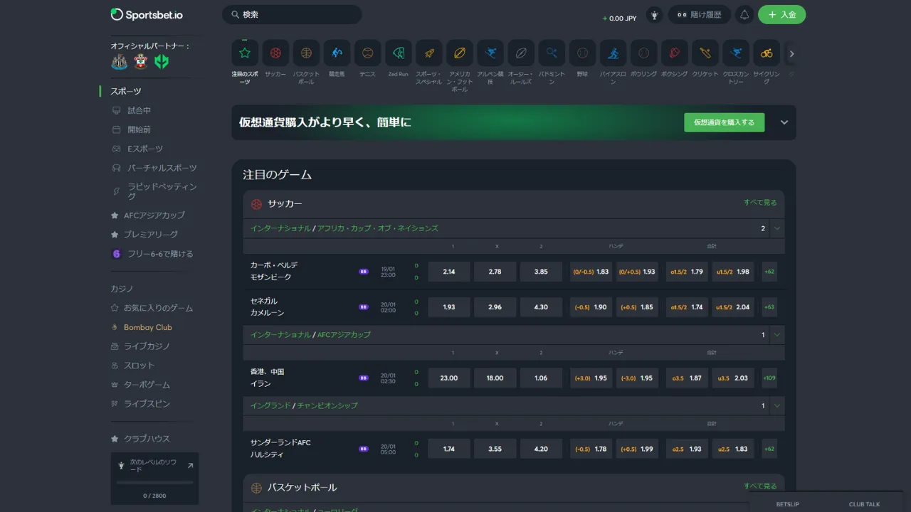 | ウェブサイト sportsbet.io | 通貨 日本円/仮想通貨 |