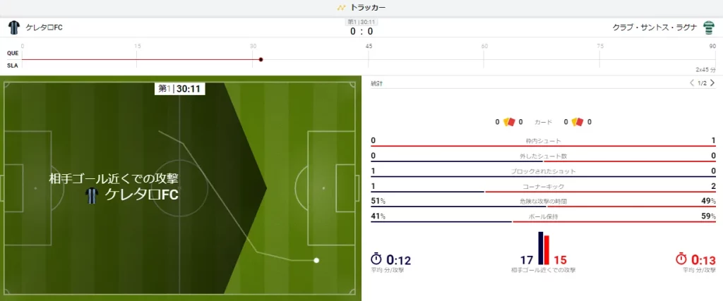 ライブベッティングを利用すると、試合の最新情報がリアルタイムで更新されるため、どちらのチームが攻めているか、選手の交代があったか、怪我人が出たかなど、試合分析に必要な情報を画面上で確認できます。