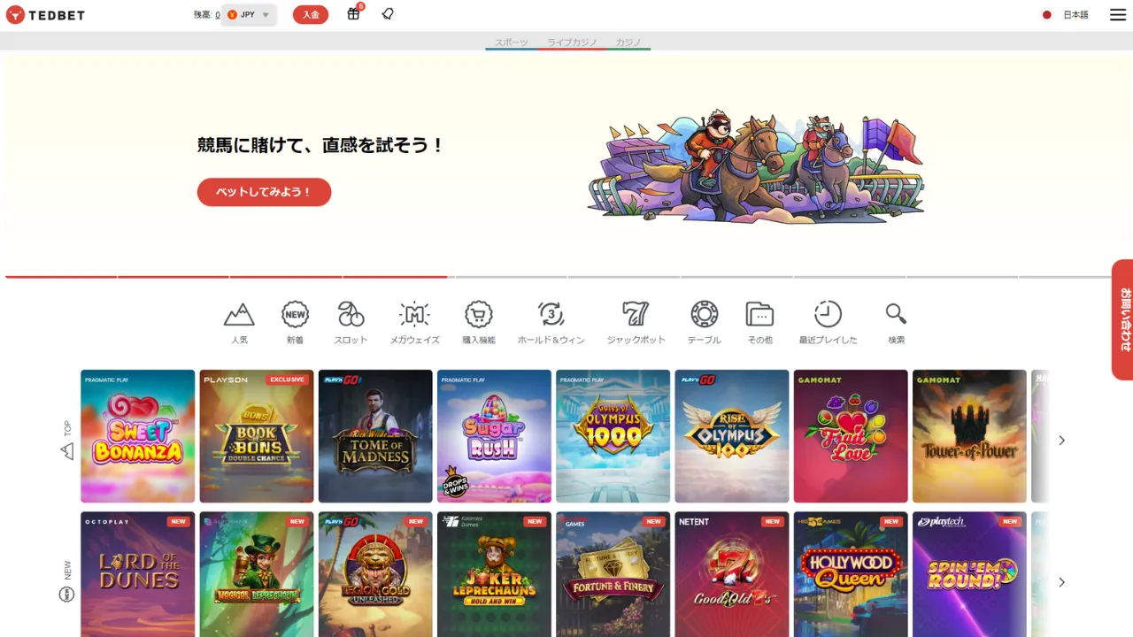 テッドベットはシンプルなサイトデザインで、ブックメーカーからオンラインカジノまで、ユーザーが求めるナビゲーションを分かりやすく配置しています。