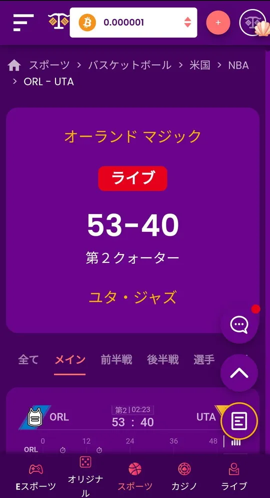 ライブベッティング画面